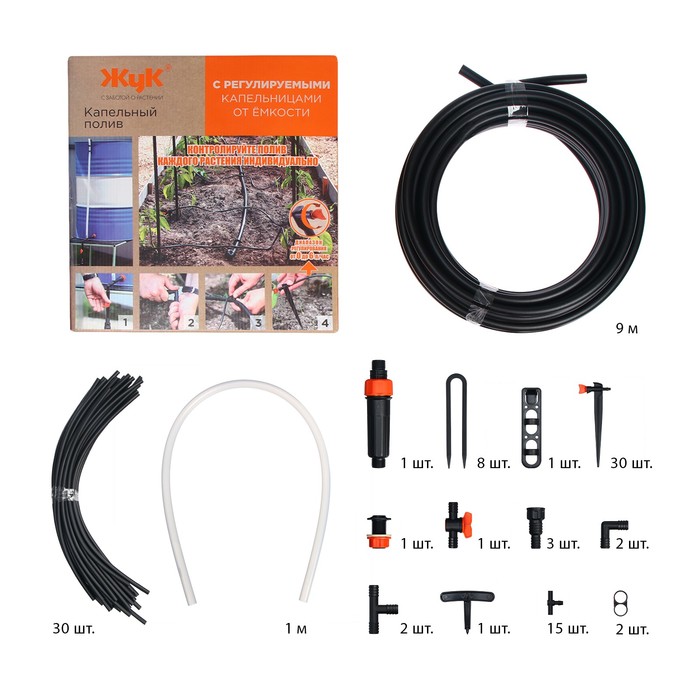 Набор капельного полива от ёмкости, с регулируемыми капельницами, 30 растений, «Жук»