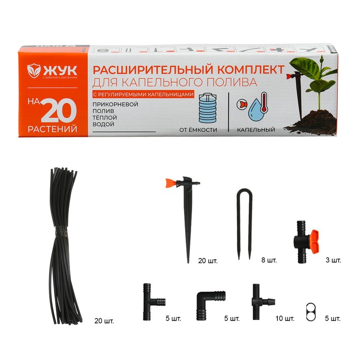 Набор расширительный для капельного полива от ёмкости, на 20 растений, «Жук»