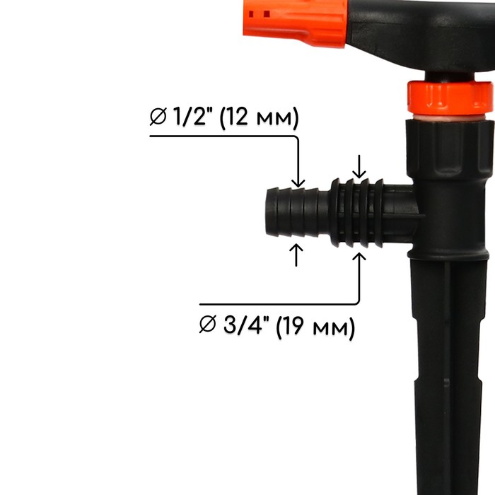 Распылитель предназначен для работы со шлангами 1/2 и 3/4. В комплект входит штуцер для подсоединения распылителя. На ножке распылителя расположены оригинальные ребра, надёжно фиксирующие распылитель.