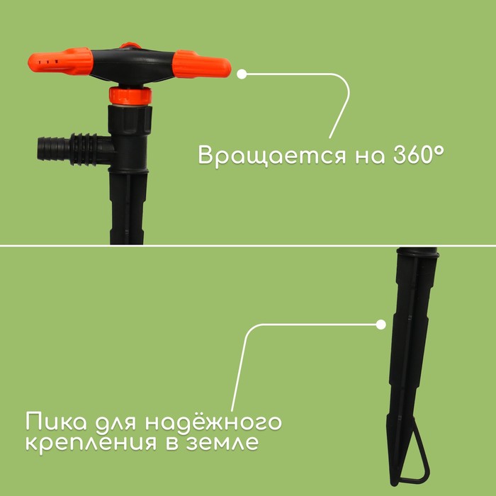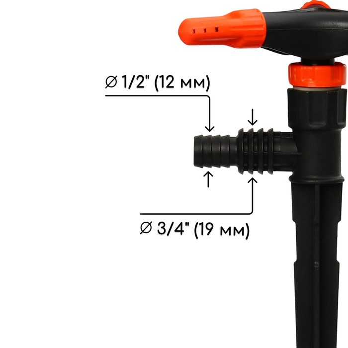 Распылитель предназначен для работы со шлангами 1/2 и 3/4. В комплект входит штуцер для подсоединения распылителя. На ножке распылителя расположены оригинальные ребра, надёжно фиксирующие распылитель.