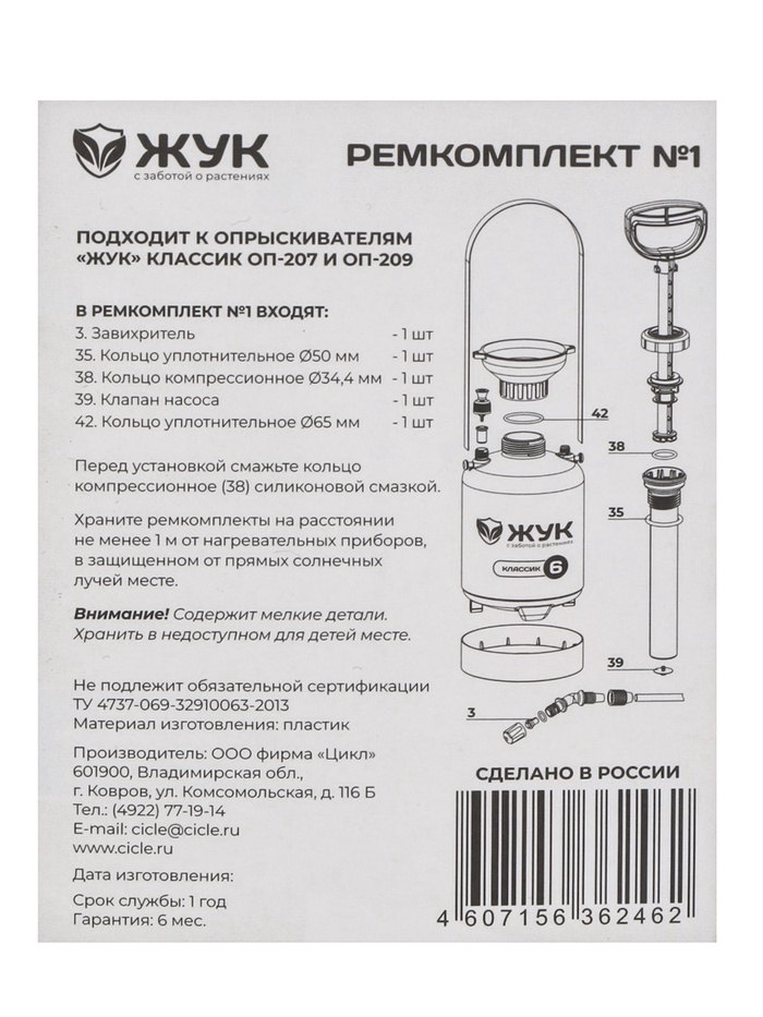 Ремкомплект №1, к опрыскивателям ОП-207, ОП-209, «Жук»