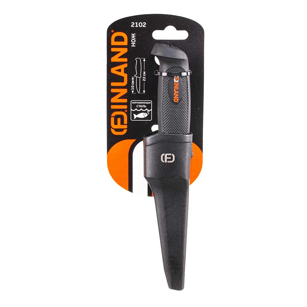 Нож с двухкомпонентной рукояткой с нерж.лезвием с пласт. ножнами FINLAND 2102