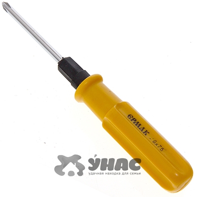 Отвертка 2в1 ЕРМАК желтая 6*75 651-967 (12/360)