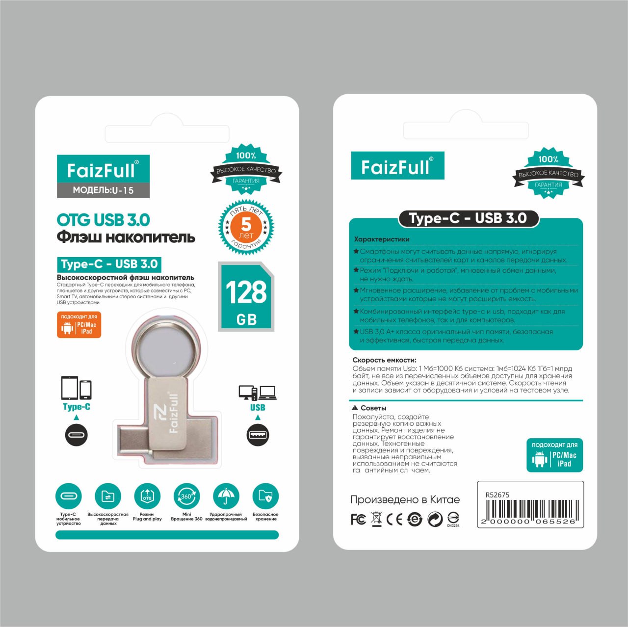 Флэш-диск USB Faiz Full U15 128 GB (2 в 1) USB 3.0 + Type-C металл