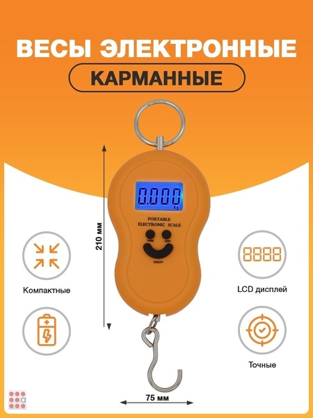 Безмен электронный 50 кг/10 г Во многих профессиях, а так же в нелегкой жизни домохозяйки встает проблема хитрых продавцов, которые нагло стараются обвесить Вас на своих подкрученных весах. Даже страшно подумать, сколько такой черной разницы порой оседает в их карманах. Незаменимая вещь для любого рыболова. Компактный, легкий, удобный электронный безмен позволяет в любой момент взвесить как отдельный трофей, так и весь улов. Электронный безмен - устройство для взвешивания продуктов, товаров. Безмен особенно будет полезен хозяйкам при заготовках, работникам почты при отправке посылок, а также в качестве контрольных весов при покупках товаров на рынке. Характеристики: Возможность переключать единицы измерения - кг, lb, oz Функция автовыключения Сигнализатор низкого заряда батареек Звуковая индикация Подсветка дисплея Максимальный вес измерения - 50 кг Шаг деления - 10 г Габаритные размеры - 85 мм х 50 мм х 22 мм Вес - 84 гр Батарейки в комплект не входят . Весы - древнее изобретение человека для измерения массы. Первое упоминание о весах относится к шестому тысячелетию до нашей эры. Существует предположение, что впервые весы появились в Древнем Вавилоне и Египте, и выглядели в виде равноплечего коромысла с подвешенными чашками. Весы изготавливают из латуни, стали, алюминия, пластмасс.