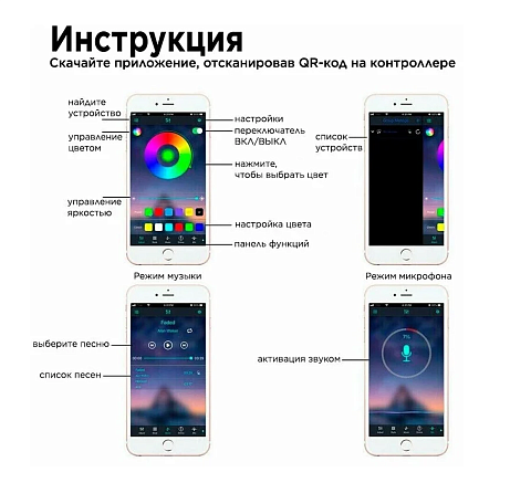 Светодиодная лента bluetooth c возможностью управления  через приложение со смартфона.