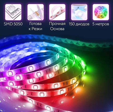 LED лента 5м RGB Bluetooth с управлением через приложение для телефона
