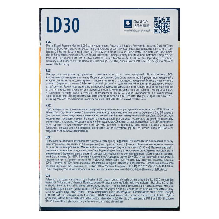 Тонометр Little Doctor LD-30, автоматический, манжета 25-36 см, 4хАА, с адаптером
