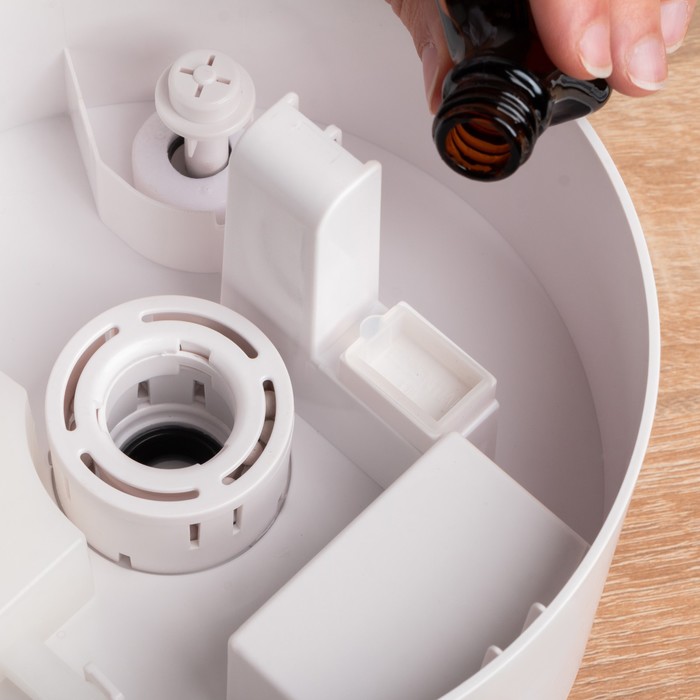 [Увлажнитель и его особенности: низкий уровень шума, большом объём резервуара, 3 режима распыления, функция ароматизации.122][Комплексная защита: сильный иммунитет, заряд бодрости, здоровые волосы и увлажнённая кожа.122][Увлажнённый воздух на целый день: резервуар 4 л, 16 часов непрерывной работы122][3 режима распыления122][Функция ароматизации122][2 способа пополнения воды122][Низкий уровень шума122]Комплектация
