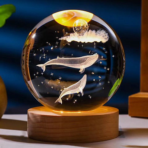 Светильник - ночник "Стеклянный Шар" с тёплым светом создаёт атмосферу спокойствия и уюта. Отличный выбор, если хочется расслабиться и настроиться на сон. Ночник "Стеклянный Шар" декоративная настольная лампа для дома или дачи. Свет исходит из деревянного основания и подсвечивает узор. В темноте выглядит очень красиво, даже волшебно! Создает уютную атмосферу в комнате, служит как декор для интерьера. Фонарь выполнен из экологичных и гипоаллергенных материалов – дерева и стекла, декор - лазерная гравировка внутри стеклянного шара.