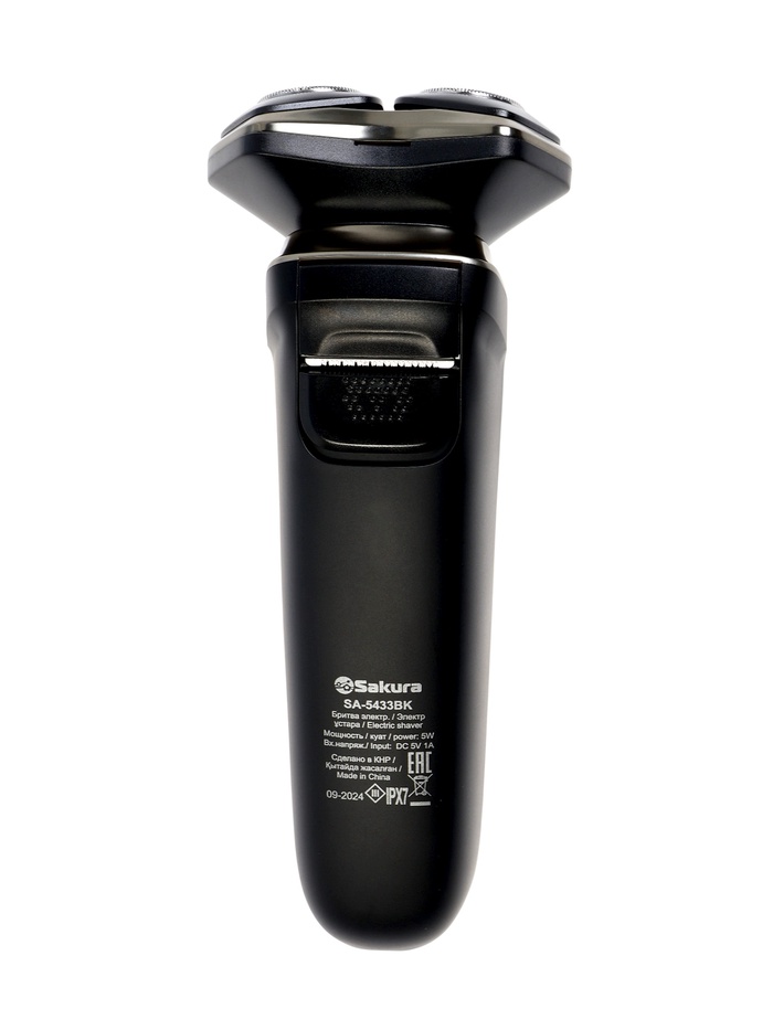 Электробритва Sakura SA-5433BK, роторная, 3 плавающие головки, LED дисплей, 5 Вт, АКБ, чёрная