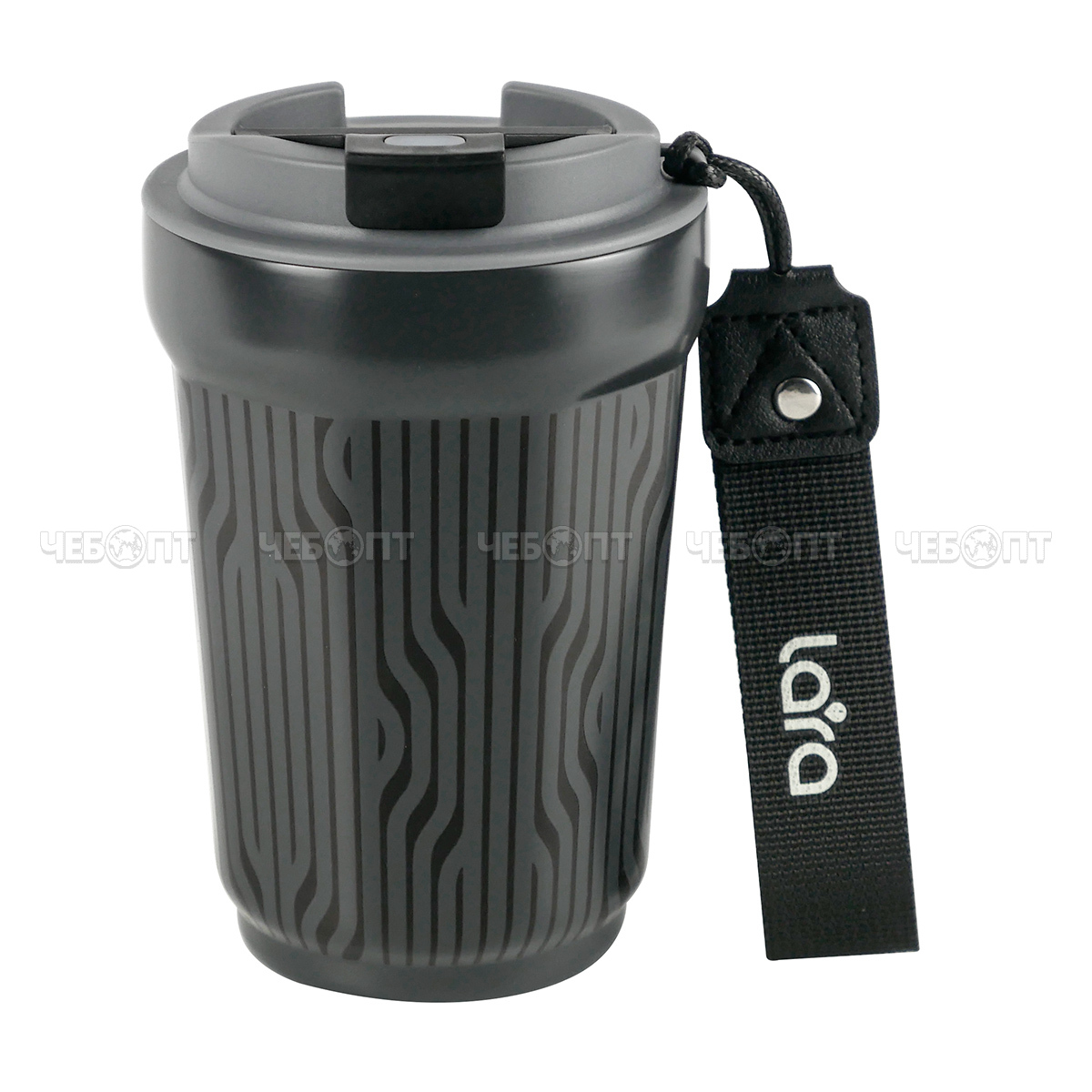 Термокружка 0,42 л LARA LR04-29 КАРБОН двойные стенки, сталь, ремешок, прорез. дно, крышка/клапан [24]