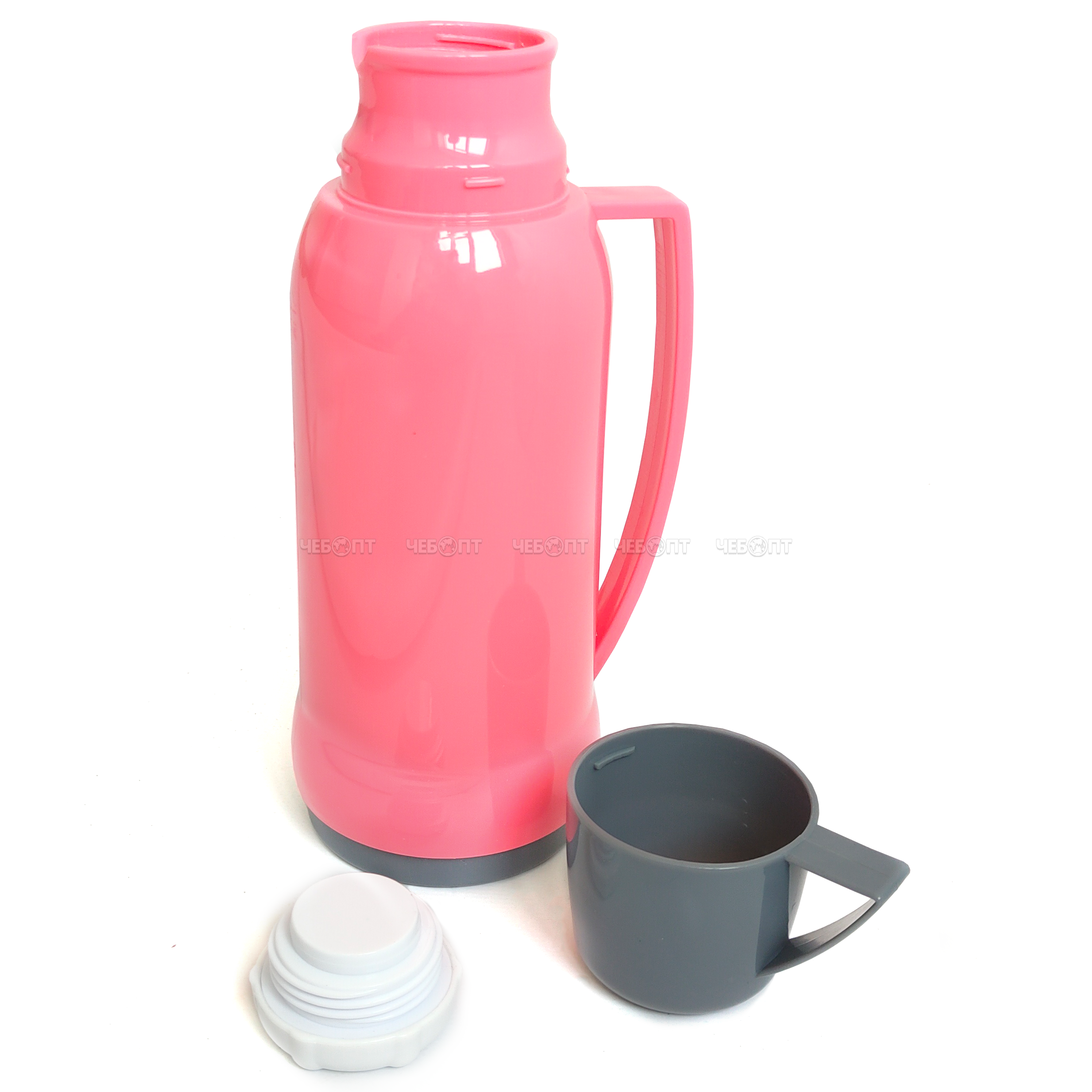Термос 1,0 л HOMEON TR-06, пластиковый корпус, стеклянная колба, ручка на корпусе, крышка-чашка $$ [30] HOMEON