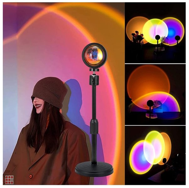 Это уникальный цветной светильник-проектор, который поможет расширить ощущение пространства, создать загадочную, романтичную и уютную атмосферу и сделать потрясающие фото! Мягко освещает окружающую среду и создает теплую атмосферу заката. Напольная Лампа раскрасит вашу квартиру в новые яркие цвета - идеально подойдет как да вечеринок, так и для просто уютного вечера дома. Романтическая лампа: проекционная лампа для заката позволяет создать романтическую современную спальню, огни отбрасывают закатные огни на стены, потолок и пол, принося счастье семье Питание от USB: торшер с проекцией заката, 5 Вт, USB-источник питания, кабель USB длиной около 1,5 м, который можно использовать для зарядки или подключения. Цветной: лампа для заката имеет четыре сменных мембраны лампы, вы можете выбрать свой любимый цвет. 360 градусов: регулируемый угол 360 градусов для удовлетворения потребностей в освещении под разными углами. Многофункциональность: отлично подходит для освещения и фотосъемки. Подходит для детской комнаты, спальни, гостиной, активного отдыха и многого другого, создавая великолепную атмосферу. Цвет арматуры черный Выключатель на проводе Питание от USB Мощность 5 Ватт Особенности регулировка по высоте, регулировка яркости, складная конструкция, прозрачный плафон, режим ночника, регулировка наклона и поворота плафона, лампы в комплекте Размеры Ширина 10 см Высота 26 см Длина шнура 150см Вес0.5 кг Параметры плафонов и арматуры Материал плафона / абажура  металл, пластик Параметры источников света Вид ламп светодиодные Мощность одной лампы 5 Ватт Товары представлены в ассортименте, выбор цветов или моделей не предоставляется. На фотографиях могут быть представлены не все варианты.