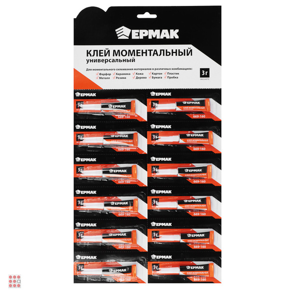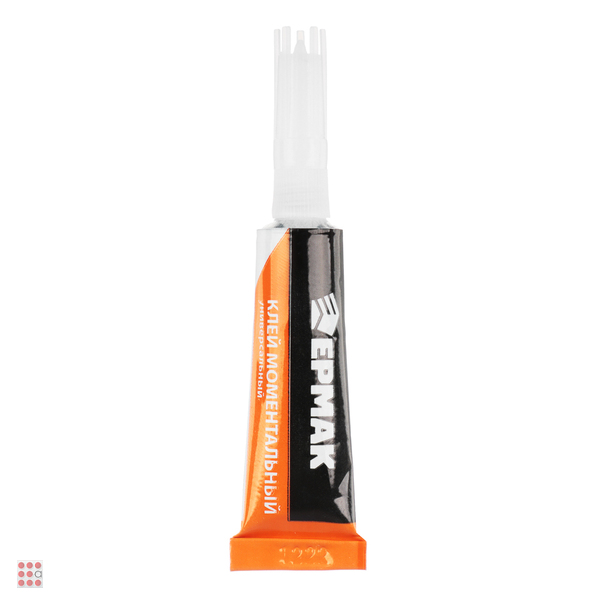 Моментальный универсальный, водонепроницаемый клей. Используется для моментального склеивания материалов в различных комбинациях: фарфор, металл, керамика, резина, кожа, дерево, картон, бумага, пластик, пробка.