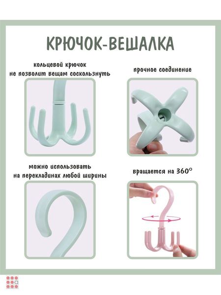 Поворотный крючок на штангу VETTA - идеальное решение для хранения одежды в гардеробе или ванной. Он изготовлен из прочного полипропилена и имеет размеры 13,5x6,5 см. Благодаря поворотному механизму, крючок позволяет легко и быстро выбрать нужную вещь, а также предотвращает ее деформацию. Крючок легко устанавливается на штангу и позволяет рационально использовать пространство вашего шкафа или ванной комнаты. Удобная и функциональная вещь для организации пространства в доме. Держатель цепляется на любую перекладину или рейлинг и дает возможность повесить одновременно 4 вещи. Можно использовать в машине для подвешивания вещей. Вешалка-крючок имеет небольшой вес и компактный размер цвет микс 20г