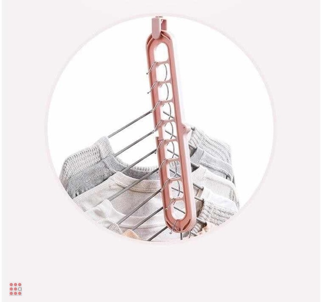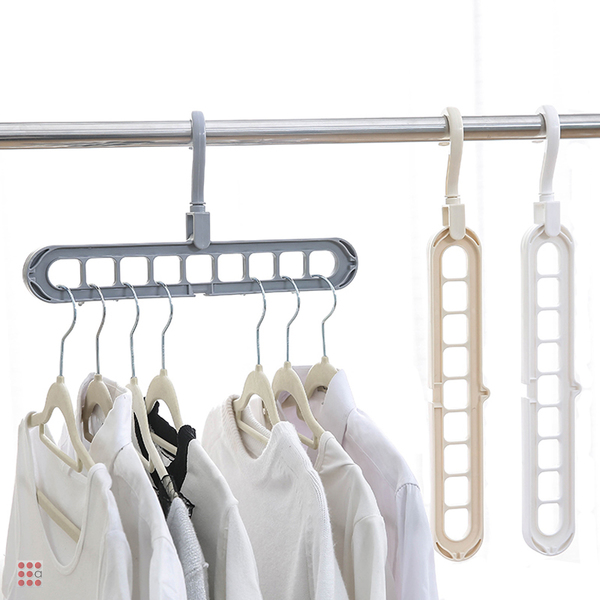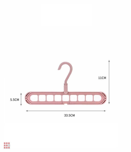 Удобная вешалка для одежды, позволяющая сэкономить массу свободного места. Она компактно структурирует содержимое. В шкафу поместится в 3 раза больше одежды. Вешалка имеет съёмный крючок, который позволяет размещать вешалку, как горизонтально, так и вертикально. При этом в отверстия также можно повесить галстуки и шарфы. Имеет 9 отверстий.