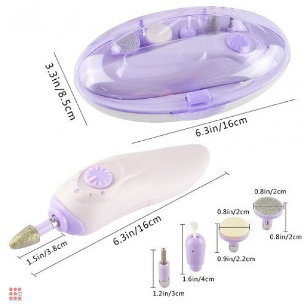 Маникюрно-педикюрный набор с пятью различными насадками - незаменимый помощник для поддержания красоты Ваших рук. Набор обеспечит профессиональный уход за ногтями в домашних условиях, и Ваши ногти будут всегда ухоженными и здоровыми. С помощью набора можно быстро и эффективно отполировать ногти, придать им подходящую форму, проделать особо тонкую работу, без лишних хлопот добившись идеального состояния ногтей. Набор для маникюра и педикюра работает от 2 батарей АА, что обеспечивает его надежную работу в любом месте. Набор легко хранить и брать с собой в путешествие – он надежно закрывается крышкой, обеспечивая сохранность насадок и компактность хранения. Компактная и стильная машинка обеспечит полноценный уход за вашими ноготками. С его помощью Вы самостоятельно справитесь с рядом процедур: * Обработаете внутреннюю поверхность отрастающего ногтя; * Без боли и вреда удалите кутикулы; * Избавитесь от мазолей и натоптышей; * Обработаете вросшие ногти, грубые участки кожи; * Отполируете ногти и придадите им естественный блеск. Благодаря 5 различным насадкам, набор позволяет следить как за натуральными, так и за искусственными ногтями. Удобный чехол для хранения набора. ПРИМЕЧАНИЕ: 1. Не используйте устройство без шлифовальной головки; 2. Не мойте устройство напрямую с водой; 3. Храните продукт в помещении или в сухом месте; 4. Не разбирайте изделие самостоятельно; 5. Храните в местах, недоступных для детей.
