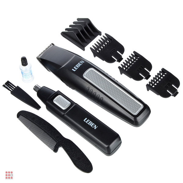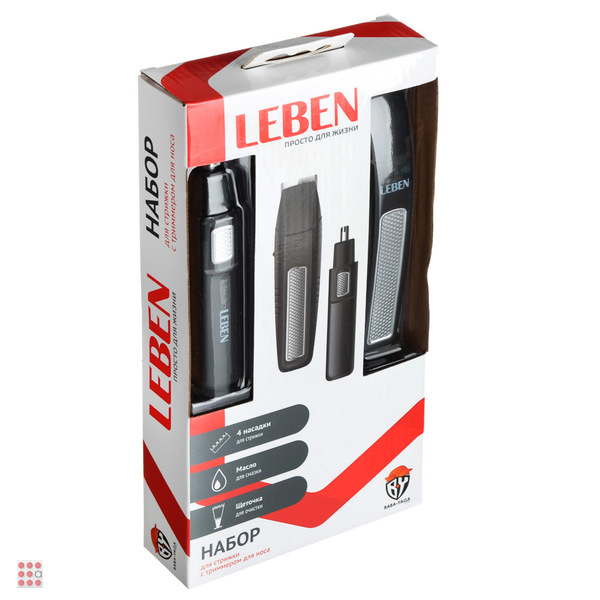 Машинка для корректировки усов и бороды LEBEN с аккумуляторным питанием. Лезвия выполнены из качественных материалов, что обеспечит комфорт во время стрижки. Длину стрижки можно варьировать с помощью смены одной из 4 насадок. К тому же в набор входит приспособление для удаления лишних волос в носу и ушах. Материал ножей Нержавеющая сталь