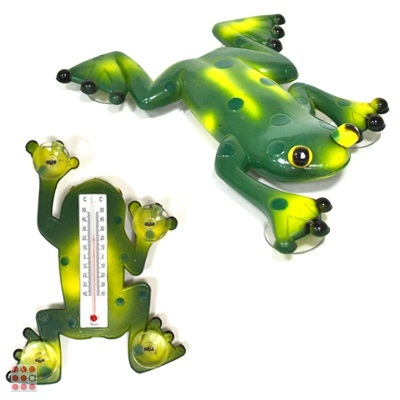 Подскажет температуру за окном, а также послужит интересным украшением! Описание Сочетает в себе декоративные и практические свойства. Забавный аксессуар не только подскажет температуру за окном, но и послужит интересным украшением! Крепится на окно с помощью присосок. С улицы кажется, будто на стекле сидит живая лягушка! Интересно, что лягушки в китайской традиции считаются существами, приносящими удачу, и если эти земноводные водятся у вашего дома, фэн-шуй считает это благоприятным знаком. Китайцы полагают, что лягушки защищают от опасностей и неприятностей. Вопреки всем капризам погоды и судьбы, в вашем доме поселятся радость, удача и успех! Размер упаковки 17,5x23,5x3,5 см