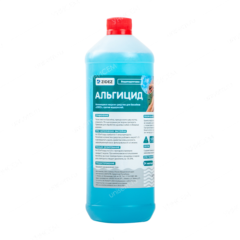 ZIDEZ Альгицид для бассейнов –специальное непенящееся жидкое средство для бассейнов против водорослей. Идеально подходит для фонтанов, горок, SPA-бассейнов, простых бассейнов, так как не образует пены в условиях подвижной воды. Альгицид не боится заморозки при транспортировке, после разморозки не теряет своих свойств. Эффективно уничтожает водоросли в бассейне и предупреждает их образование. Объём–1 литр.Преимущества:• не образует пены даже в условиях подвижной воды;• эффективно и быстро удаляет водоросли;• осветляет воду;• обладает длительным действием.