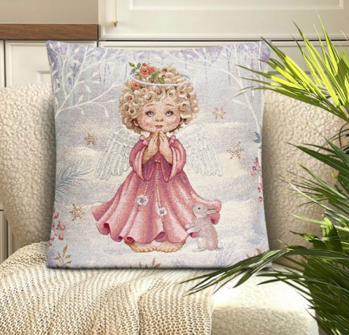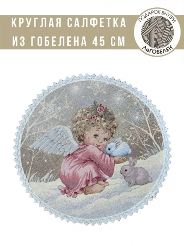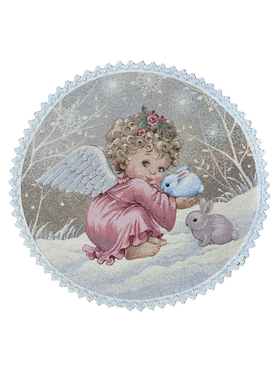 Ангел и зайчики Девочка Салфетка круг д45 см 2107979