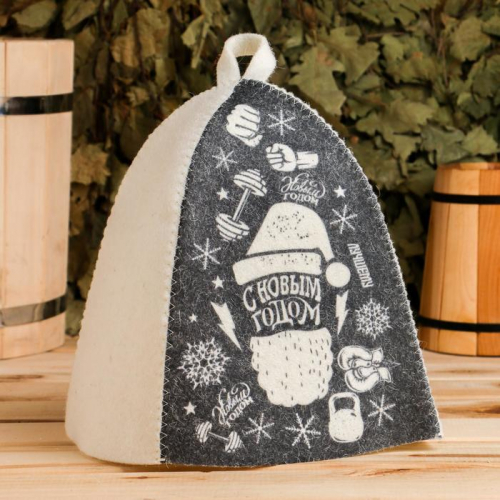 Шапка для бани и сауны, с принтом «Реальный Дед Мороз», полиэфир 70%, шерсть 30%, «Банная забава»