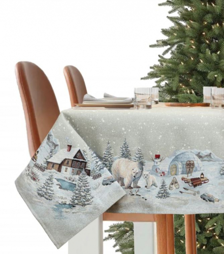 Белые медведи Скатерть овал 140х180 см 2520406 серебро