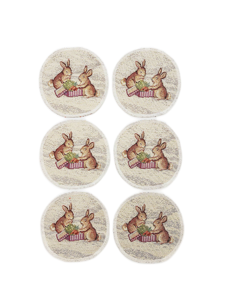 Дед Мороз в волшебном лесу Зайцы Комплект салфеток 6шт д11 см БТ золото 2107586