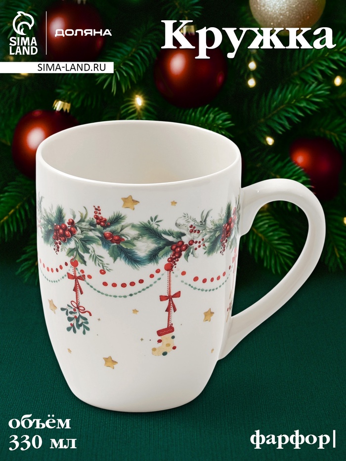 Кружка Доляна «Новогодние подарки», 330 мл, фарфор, белая