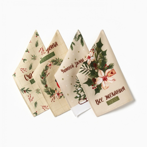 Набор новогодних полотенец Доляна «Рождественские цветы» 28×46 см - 2 штуки, 100% хлопок, вафля 160 г/м²