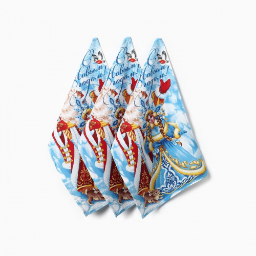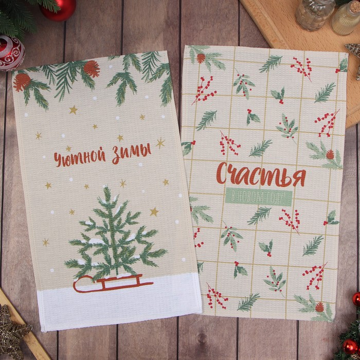 Набор новогодних полотенец Доляна «Зимние праздники» 28×46 см - 2 штуки, 100% хлопок, вафля 160 г/м²