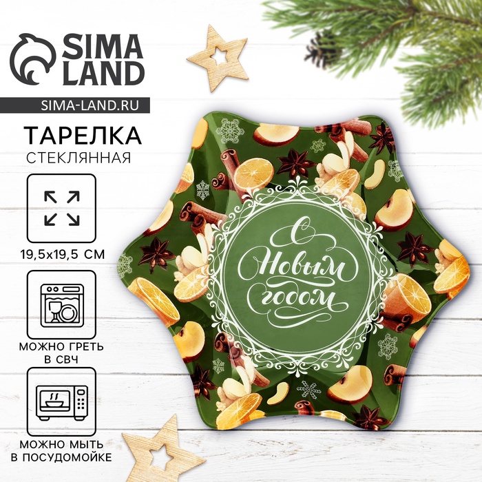 Стеклянная тарелка размером 19,5 см — отличный выбор для новогодних праздников.