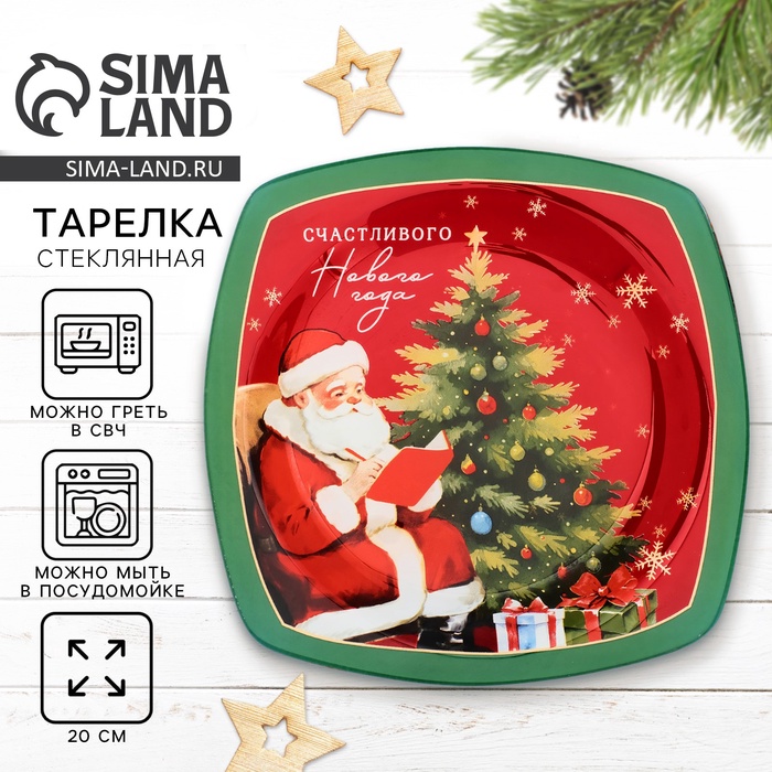 Тарелка новогодняя плоская «Счастливого Нового года», 20×20 см