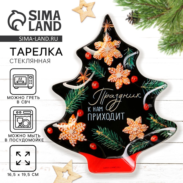 Тарелка плоская новогодняя «Праздник к нам приходит», 19.5×16.5 см