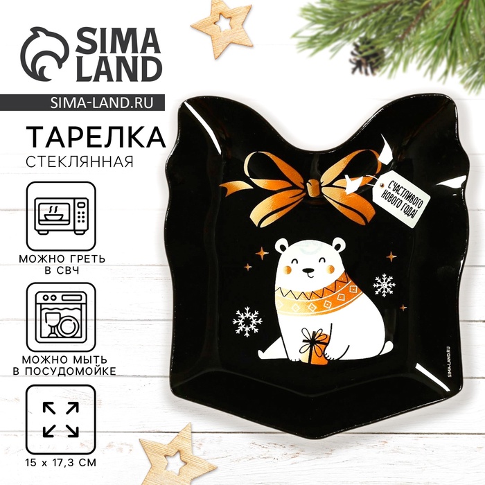 Тарелка плоская новогодняя «Счастливого Нового года», 15×17.3 см