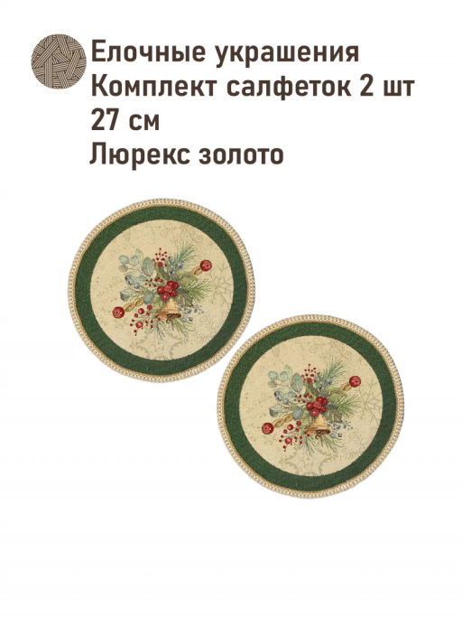 Елочные украшения Зеленый бордюр Комплект салфеток 2шт д27 см золото 2519887 New