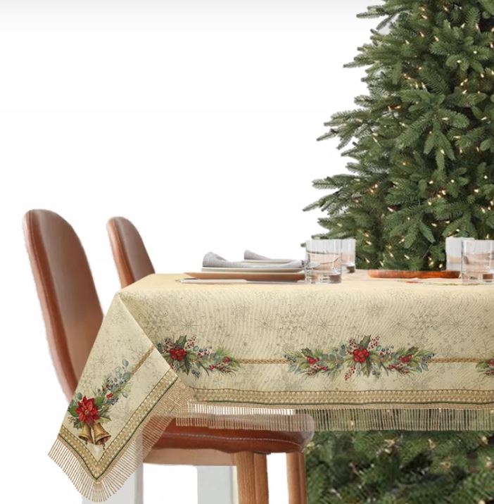 Елочные украшения Зеленый бордюр Скатерть 135х175см Бахрома New 2520696