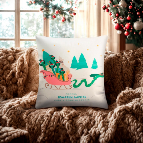 Чехол на подушку Этель "Новогодняя змейка", 40*40 см, 100 п/э, велюр