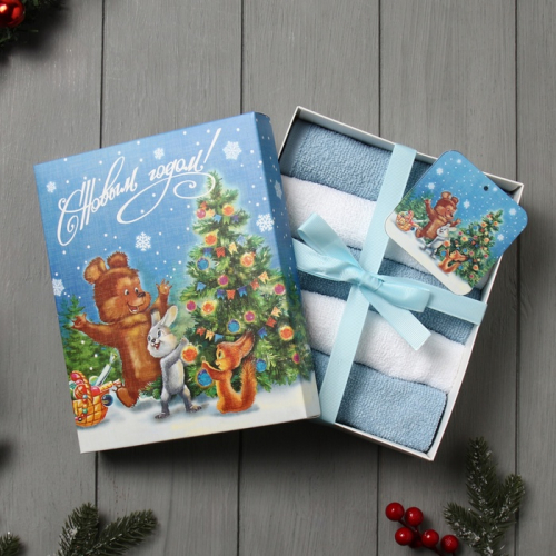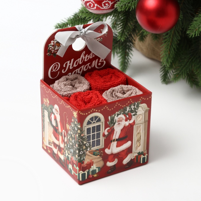 Набор махровых полотенец Этель «Санта» 30×30 см-4 шт., хл 340 г/м²