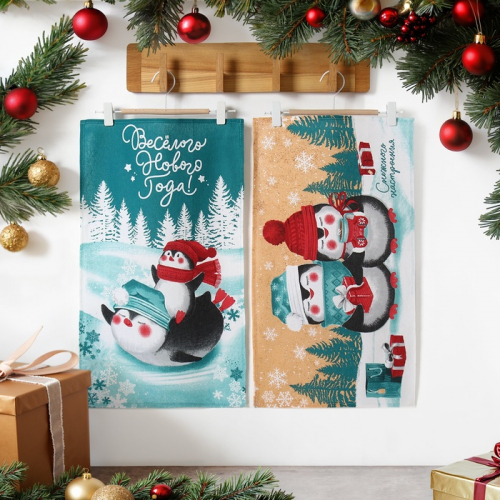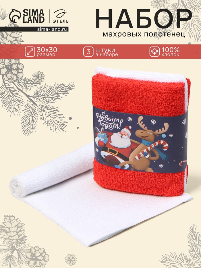 Набор новогодних махровых полотенец «Этель. Новогодний дуэт», 30×30 см - 3 штуки, хлопок 100%