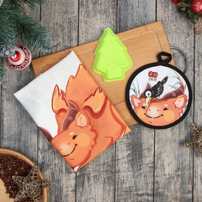 Набор подарочный «Этель. Китайский дракон»: кухонное полотенце 40×73 см, прихватка 17×17 см, хлопок