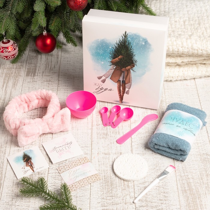 Набор подарочный новогодний «Этель. Жду чудо», 8 предметов, полотенце, повязка на голову