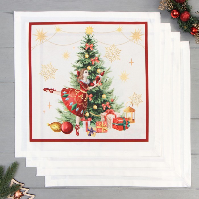Набор салфеток сервировочных «Этель. Щелкунчик», 4 шт., белые, 40×40 см