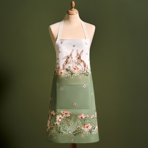Принт с милыми кроликами, нежными зелёными оттенками и природными мотивами делает фартук выразительным элементом интерьера. Дизайн поддерживает пасхальное настроение и гармонично вписывается в кухню, столовую или дачный интерьер. Качественная цифровая печать сохраняет чёткость рисунка и яркость цветов даже после многократных стирок при соблюдении рекомендаций по уходу.