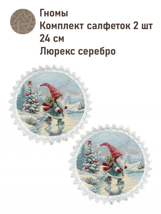 Гномы Комплект салфеток 2шт д24 см 2520022 серебро New