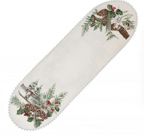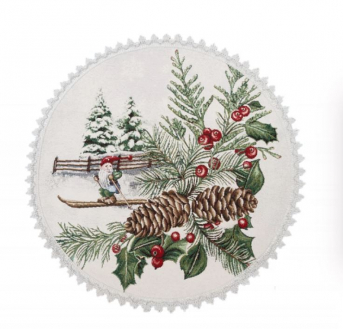 Гномы лыжники Салфетка д45 см 2520665 тесьма шенилл серебро