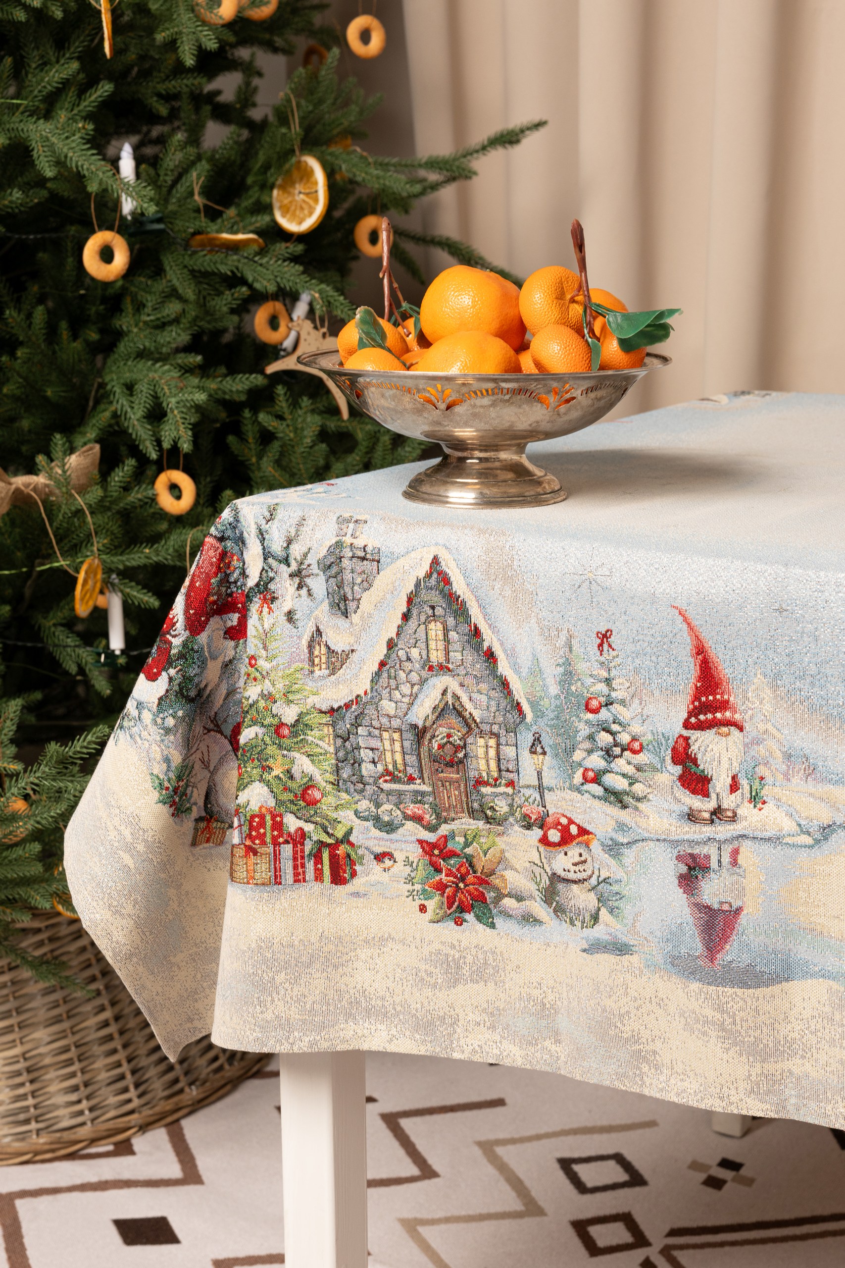 Гномы Скатерть круг д140 см 2518982 серебро New