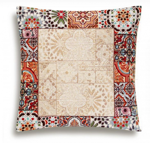 Рисунок создается переплетением нитей различных цветов и фактуры. Состав ткани: хлопок ( дающий фактуру и приятную тактильность ) и синтетические нити ( придающие износостойкость ). Плотность гобелена 410 г на кв.метр.