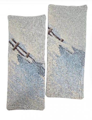 Рисунок создается переплетением нитей различных цветов и фактуры. Состав ткани: хлопок ( дающий фактуру и приятную тактильность ) и синтетические нити ( придающие износостойкость ). Плотность гобелена 410 г на кв.метр.